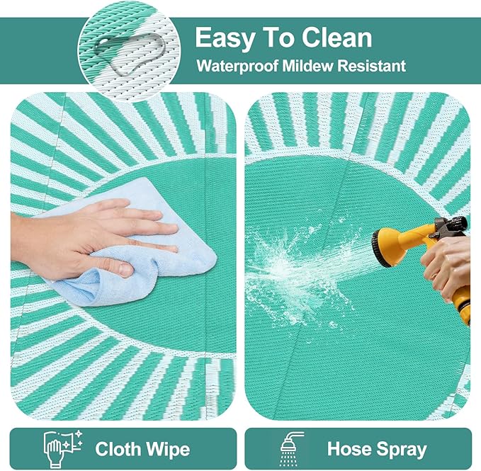 - [Easy to Clean & Waterproof] Our indoor outdoor rugs are waterproof and easy care. The rug surface is smooth, simply hose down or wipe with a damp cloth and the stains will disappear with the water flow. After drying, your patio rugs will look like new