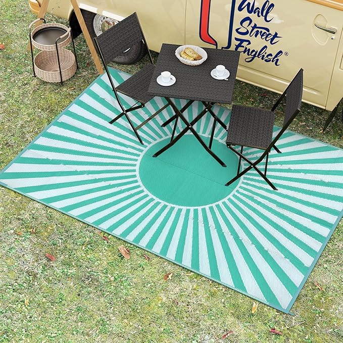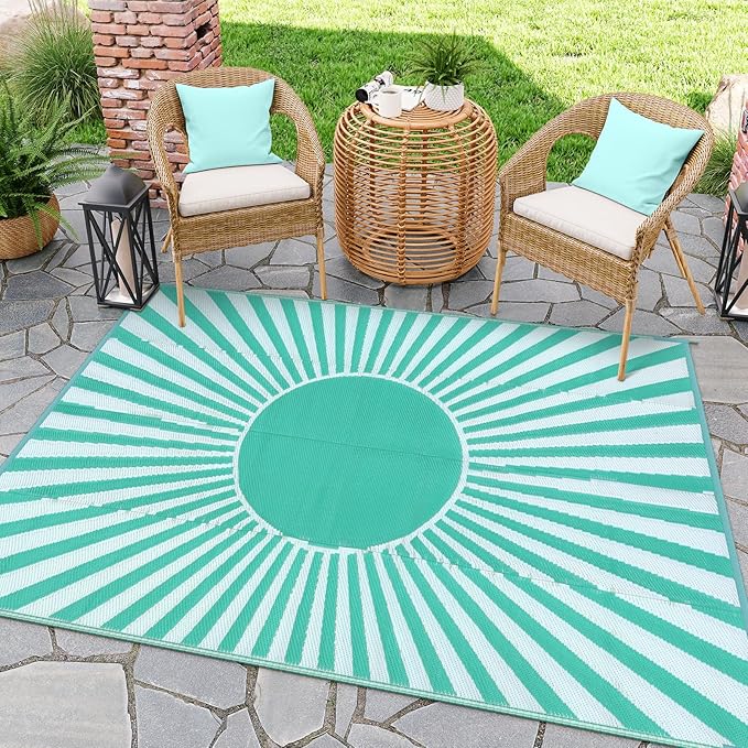 - [Versatile Outdoor Rug] The large outdoor rug is woven from a breathable, comfortable plastic material that won't damage your deck or lawn. Ideal for patio, deck, garden, backyard, balcony, camping, picnics, tent, RV road trips, beach and indoor rooms