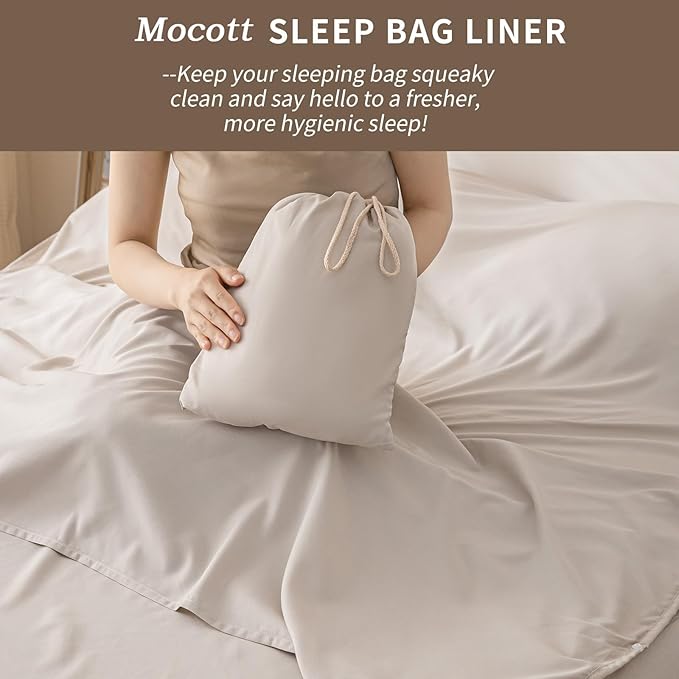 - 【ZIP IT UP FOR EASY ACCESS】Choose your own adventure with our zippered or flap designs.Mocott sleeping bag sheet comes with a full-length zipper, making it a breeze to get in and out or use it as a travel sheet.Say goodbye to bulky and heavy sleeping bag liners - ours come with a handy travel sack. Toss it in your bag and hit the road for your next camping trip or holiday with ease!