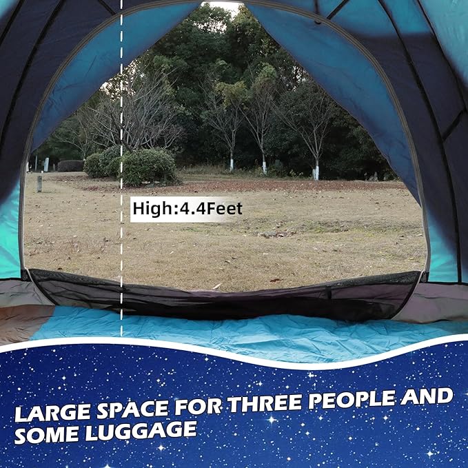 - 【Suitable for many people to travel】 2-3 people travel only need to bring a three-person tent is enough, you can reduce the number of items to carry. The tent space is large enough that three adults will not feel crowded in the tent at the same time, and luggage can also be placed in tents.