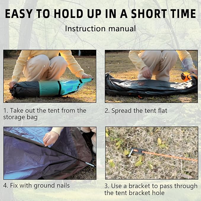 - 【Easy loading and unloading】Backpack tent with instructions, easy to understand. Even a novice can do it, saving you time outdoors.