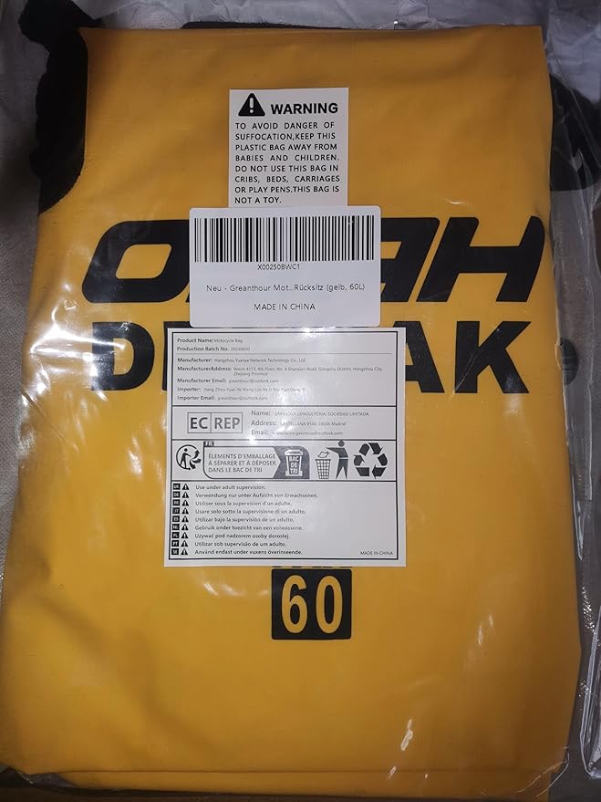 Motorcycle Dry Bag - Waterproof Motorcycle Duffle & Luggage Tail Bag Saddle Bags with Roll Top Closure, Large Storage Space,for Motorcycle Back Seat(Yellow, 60L)