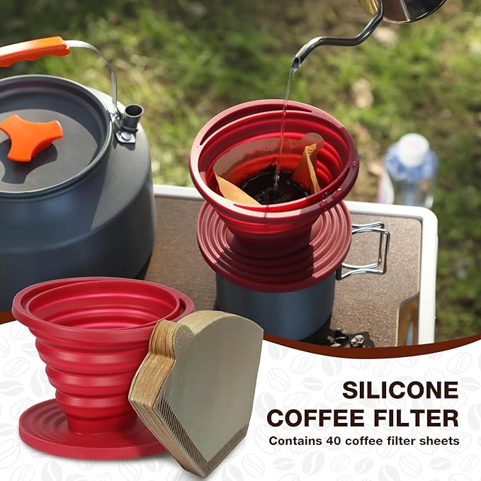 - Enhanced Coffee Brewing: Enjoy your favorite coffee on the go with our camping coffee pot that includes a collapsible silicone coffee filter and 40 coffee filter papers, ensuring that you can brew a perfect cup no matter where you are.