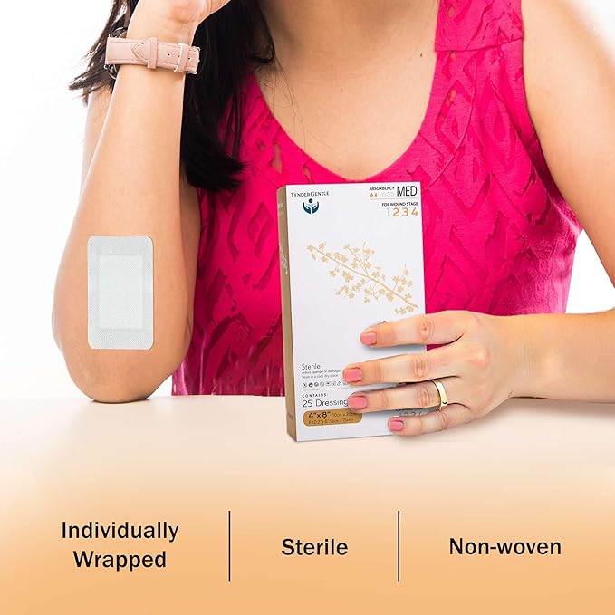 - Our adhesive gauze pads are 4x8, non-woven, and individually wrapped ensuring sterility.