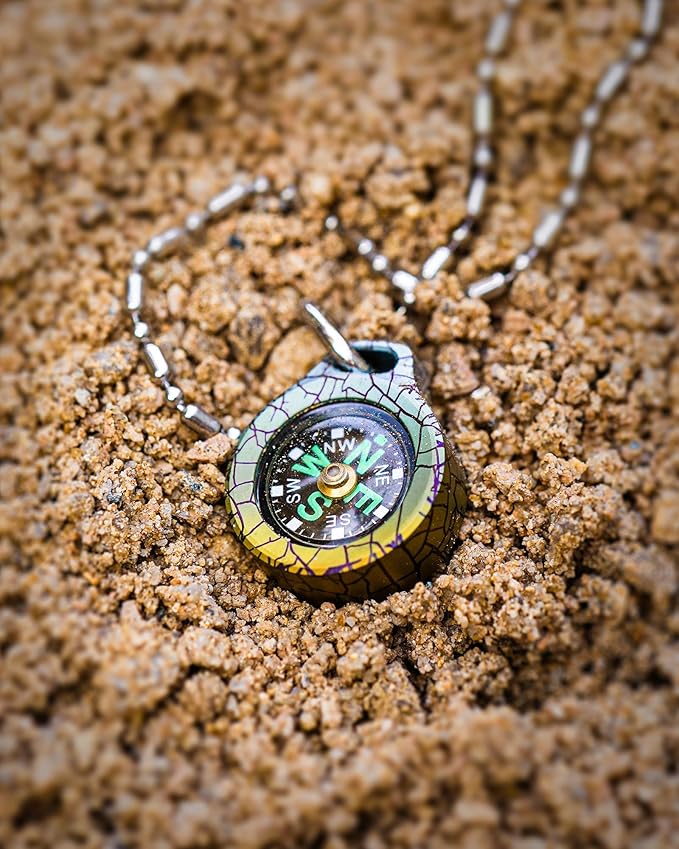 - Pocket Compass with Necklace: Small and lightweight; about the size of a nickel; easy to carry in a pocket or backpack; includes a necklace for multiple uses—wear it around your neck, attach it to a backpack or keychain, or use it for DIY purposes