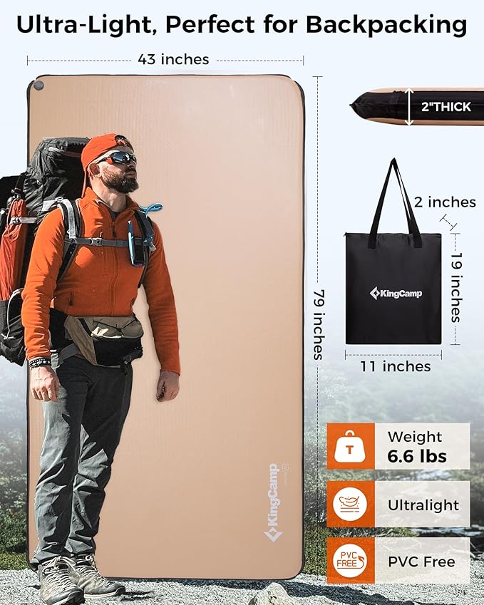 - ULTRALIGHT & BACKPACKING-FRIENDLY DESIGN: Weighing less than most camping gear, this ultralight sleeping pad is made for serious backpackers. Compresses down small into the included carry bag for easy storage in your pack—perfect for hiking, travel, trekking, or minimalist camping trips.