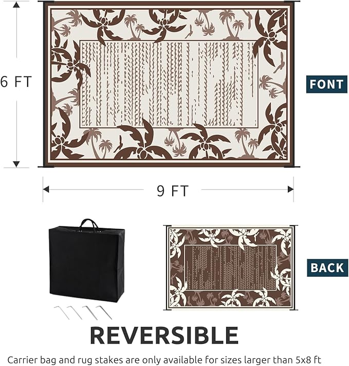 - Reversible Outdoor Rug: Featuring a double-sided tropical coconut tree design in a brown and beige palette, this indoor outdoor rugs bring a relaxing holiday vibe to your outdoor decor. and you can choose both sides to meet your needs, just flip the patio rug to switch patterns.