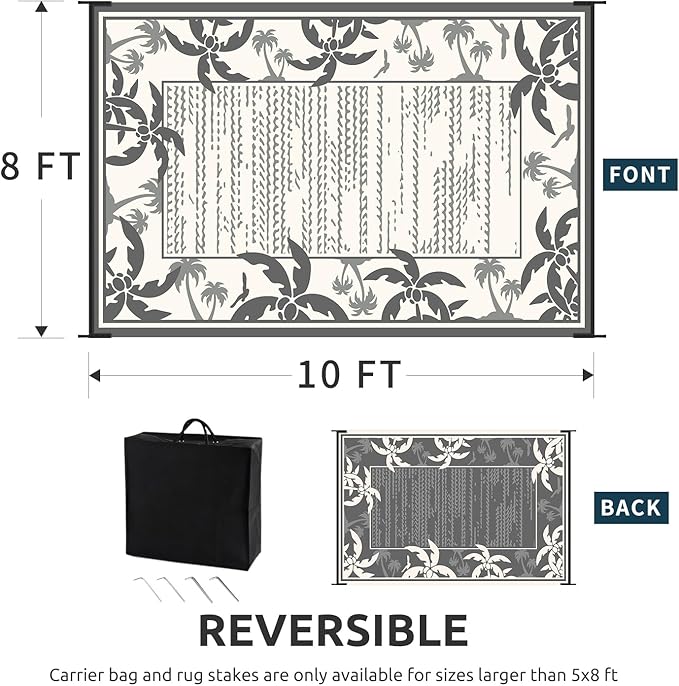 - Reversible Outdoor Rug: Featuring a double-sided tropical coconut tree design in a grey and beige palette, this indoor outdoor rugs bring a relaxing holiday vibe to your outdoor decor. and you can choose both sides to meet your needs, just flip the patio rug to switch patterns.