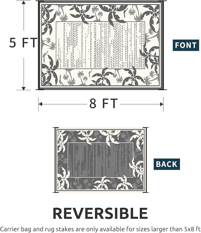 - Reversible Outdoor Rug: Featuring a double-sided tropical coconut tree design in a grey and beige palette, this indoor outdoor rugs bring a relaxing holiday vibe to your outdoor decor. and you can choose both sides to meet your needs, just flip the patio rug to switch patterns.