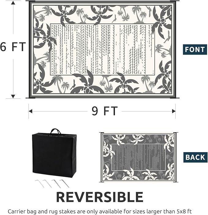- Reversible Outdoor Rug: Featuring a double-sided tropical coconut tree design in a grey and beige palette, this indoor outdoor rugs bring a relaxing holiday vibe to your outdoor decor. and you can choose both sides to meet your needs, just flip the patio rug to switch patterns.