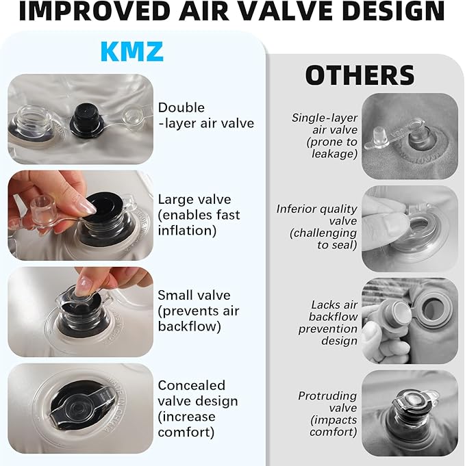 - High-Quality Leak-Proof Valve:Equipped with a premium leak-proof air valve that prevents air leakage, keeping the mattress inflated for longer periods. This ensures a reliable, hassle-free experience during both short and long stays.