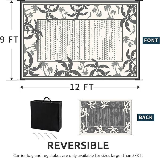- Reversible Outdoor Rug: Featuring a double-sided tropical coconut tree design in a grey and beige palette, this indoor outdoor rugs bring a relaxing holiday vibe to your outdoor decor. and you can choose both sides to meet your needs, just flip the patio rug to switch patterns.