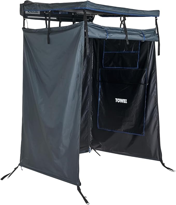 Kakadu Outback Shower Vehicle Tent, Camping Privacy Shelter, Bathroom Tent for Cars – with Roof, LED Light, BlockOut® Technology, Towel Rod, Storage System