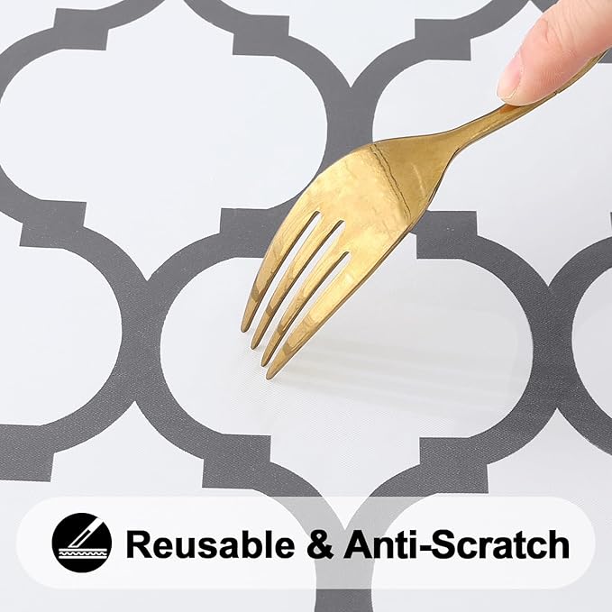 - [Waterproof & Wipe Clean] Our table cover surface is made of selected vinyl material, which can effectively waterproof. Spill proof coating makes tablecloth easy to clean, just wipe it off with a damp sponge or rag in a minute.