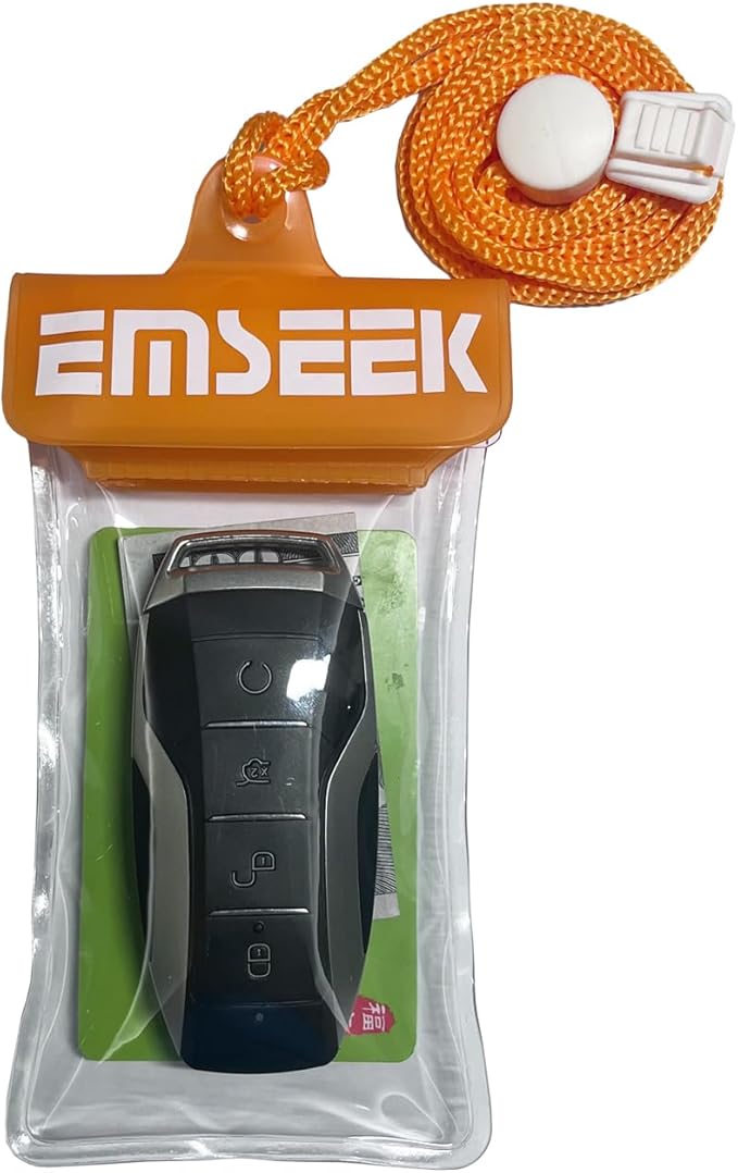 - 1. EMSEEK Waterproof car key fob case IPX8 Waterproof up to 10m Designed to protect your small items from water. Perfect for surfing, swimming, snorkeling, diving, sailing, kayaking, camping, hiking, fishing, beach and more watersports.