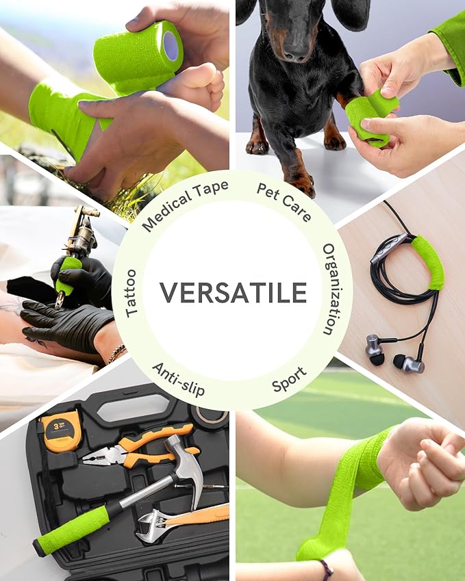 FriCARE Self Adhesive Bandage Wrap, Medical Tape in First Aid Kit, Cohesive Bandages for Wounds Sport Vet, FSA/HSA Eligible, 2 Inches X 5 Yards 6 Rolls, Grass Green