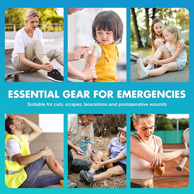 - Easy to Use and Remove: Wound closure strips is easy to use, just clean the skin around the wound, place the product, and tighten the straps to close the wound. Stitches bandage is suitable for emergency treatment of abrasions, minor cuts, lacerations and small wounds