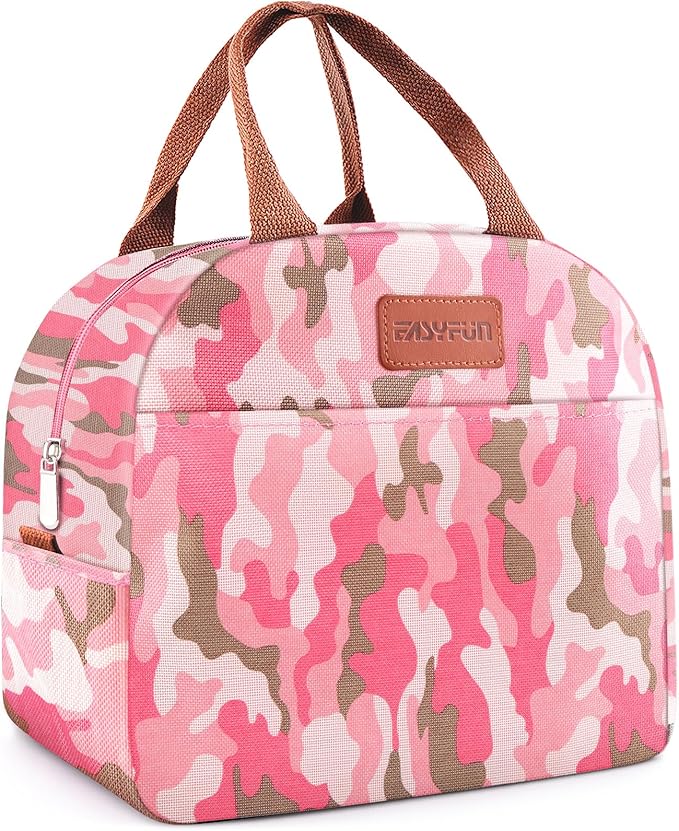 Lunch Bag for Women & Men Adult Insulated Lunch Box, Small Leakproof Cooler Food Lunch Containers Reusable High Capacity Lunch Tote Bags for Work, Travel, Outdoor (Pink Camo)