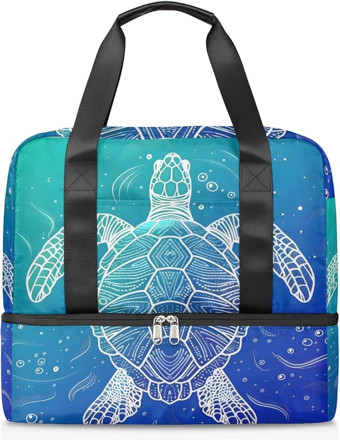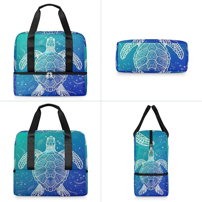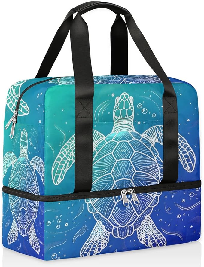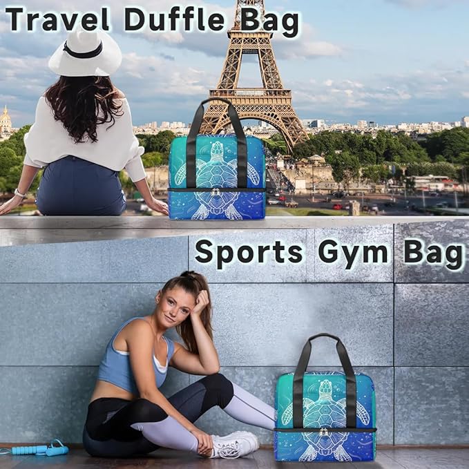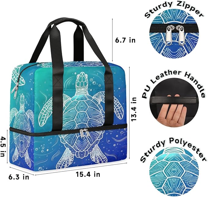 Sports Gym Bag Ocean Turtle Travel Duffel Bag Waterproof Lightweight Swim Bag Travel Tote Luggage Weekender Overnight Handbag Workout Bag with Shoes Compartment for Women Men