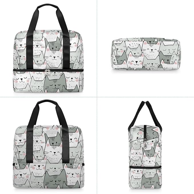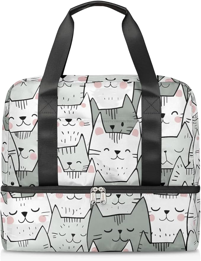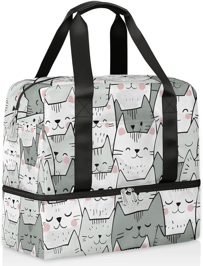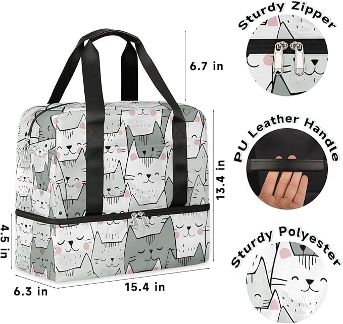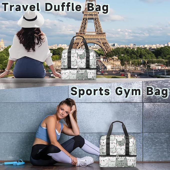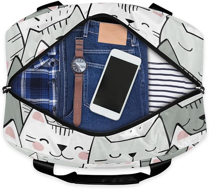 Sports Gym Bag Cute Cartoon Cat Travel Duffel Bag Waterproof Lightweight Swim Bag Travel Tote Luggage Weekender Overnight Handbag Workout Bag with Shoes Compartment for Women Men