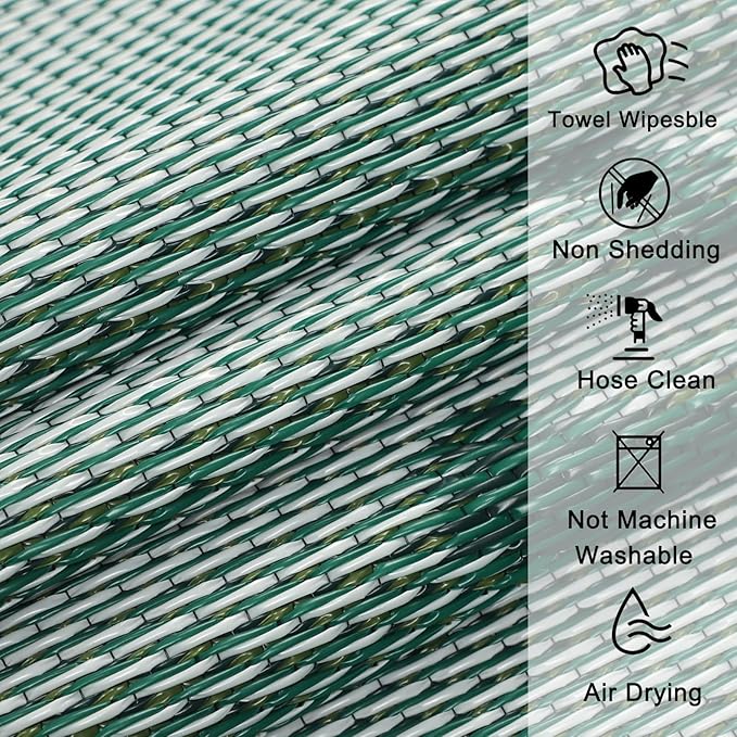 - 【Easy to Clean&Portable】The outdoor rug is easy to be cleaned, just sweep the dirt away, spray with water, hose the rug off, or use a leaf blower, then let it air dry. As for storage, the lightweight outdoor floor carpet mat is easily foldable due to its reversible design, making it portable and extremely convenient for you to store or take along during your outing and RV road trip,etc.
