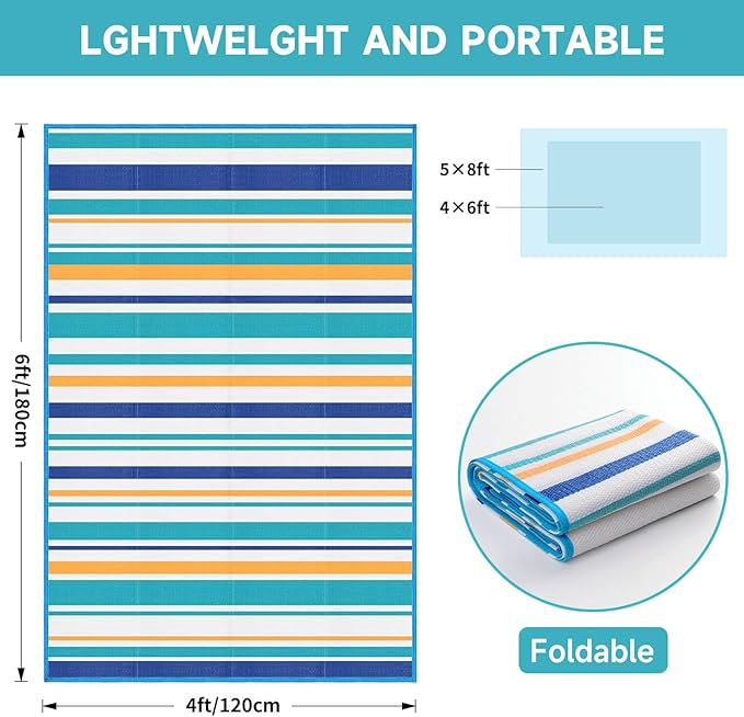 - 𝐄𝐚𝐬𝐲 𝐭𝐨 𝐌𝐚𝐢𝐧𝐭𝐚𝐢𝐧: Keep your outdoor rug looking brand new with minimal effort. It's easy to clean—simply sweep away dirt and dust. Its foldable design makes it convenient to store, perfect for outdoor adventures like camping, picnics, or daily use