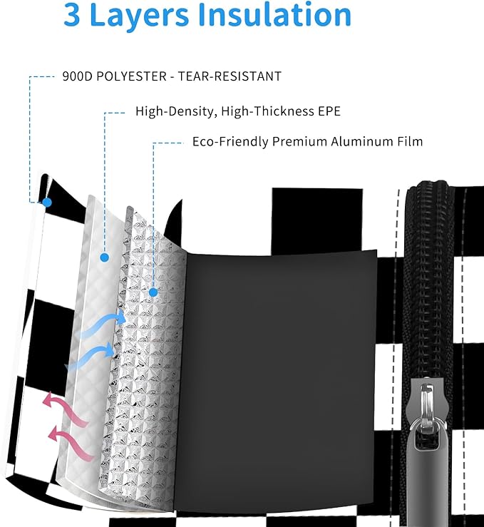 - SUPERIOR MATERIAL: Reusable lunch bag with thickened waterproof aluminum foil and three layers of insulation. Provides excellent thermal performance, durability, and easy cleaning. Keeps food cool or warm for 3-4 hours. Leakproof, lightweight, and features a soft handle for convenience