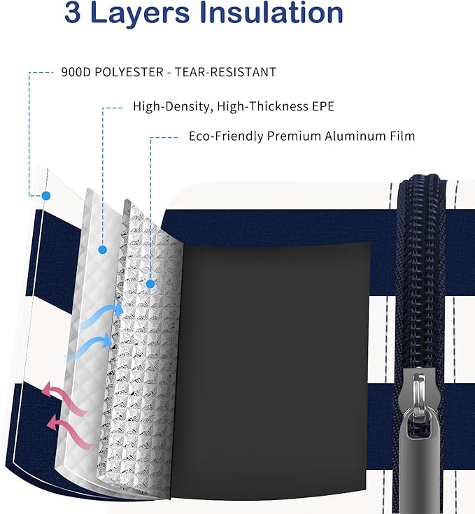 - HIGH DURABILITY: Crafted from premium frosted oxford cloth, this cooler bag features precision stitching, leak-proof design, and thickened anti-collision layers. It’s splash-resistant, easy to clean, and provides long-lasting insulation. Upgraded, thickened handles and reinforced metal zippers ensure maximum durability
