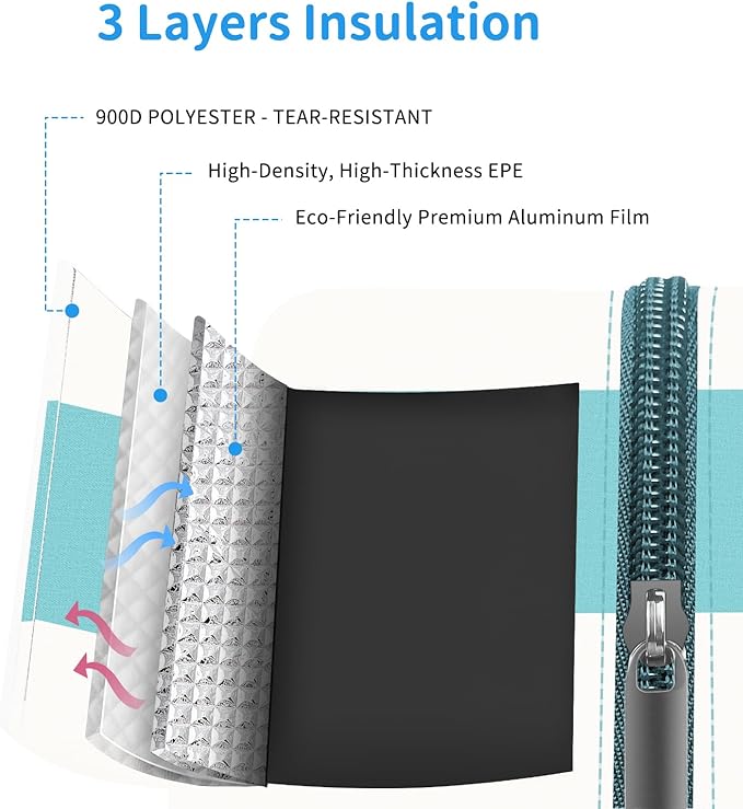 - HIGH DURABILITY: Crafted from premium frosted oxford cloth, this cooler bag features precision stitching, leak-proof design, and thickened anti-collision layers. It’s splash-resistant, easy to clean, and provides long-lasting insulation. Upgraded, thickened handles and reinforced metal zippers ensure maximum durability