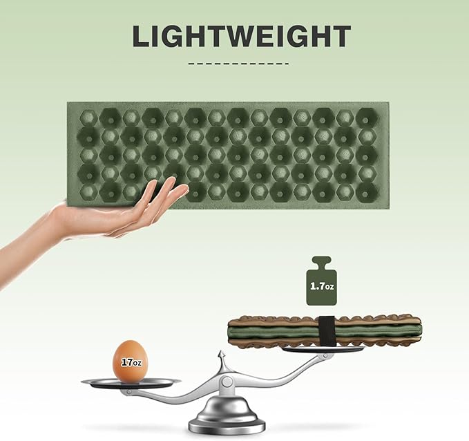 - 𝐐𝐮𝐚𝐥𝐢𝐭𝐲 𝐃𝐞𝐬𝐢𝐠𝐧: This Closed-cell foam cursion pad Peaks and valleys work together to reinforce support capacity and trap nest one to another inside to save space when packed.