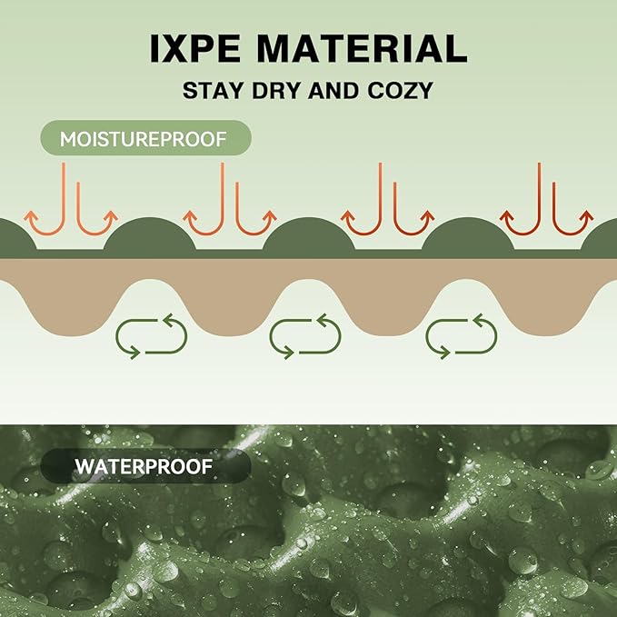 - 𝐈𝐗𝐏𝐄 𝐌𝐚𝐭𝐞𝐫𝐢𝐚:The foam camping sit pad is made of IXPE material, which is moisture-proof, dependable, and an economical option for sitting on the ground.