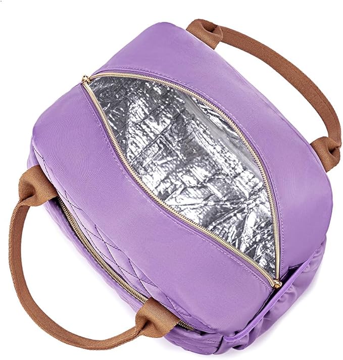 - 【FASHION ITEMS】The front of this lunchbox is designed with quilted. Simple and elegant design is a great item to pair with different clothes every day. It can blends in with your attire and isn’t too flashy or tacky. This bag looks good with purse and briefcase.