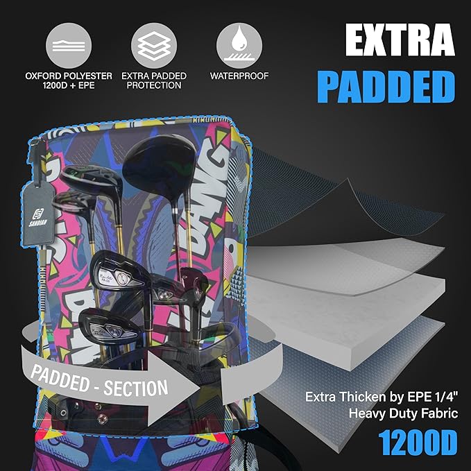 - Durability: Constructed with heavy-duty 1260D Oxford fabric and a padded upper section to protect your golf clubs during travels. It comes with a PU leather name tag.