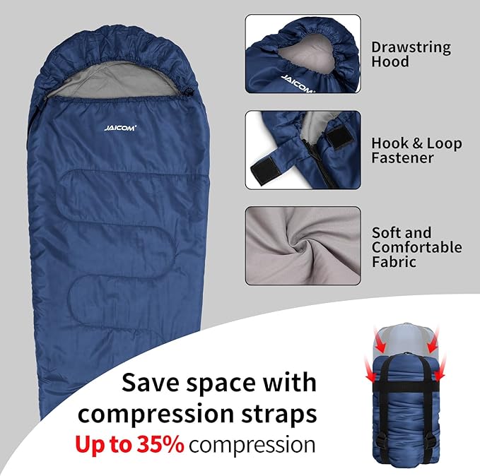 - SATISFACTION PURCHASE - JAICOM sleeping bag is ideal for gift giving and a great companion for your outdoor camping. Purchase with confidence, if you are not satisfied, you can contact us at any time, we will provide you with a perfect solution within 24 hours.