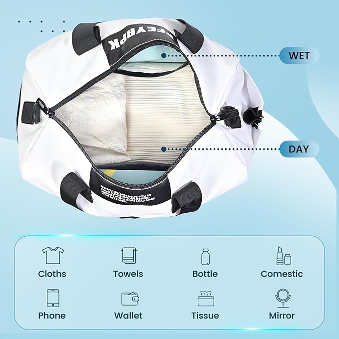 - 【Dry Wet Separate Duffel Bag】This duffle bag for women offers a spacious main compartment to store your clothes and items. A zippered waterproof PVC lined pocket for wet clothes.
