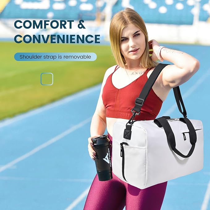 Lightweight Gym Bag for Women Man,Water Resistant Duffle Bag for Travel with Wet Pocket,Wear-resistant Weekender Overnight Duffel Bag,Travel Bag Easy to Clean Tote bag for women(White)