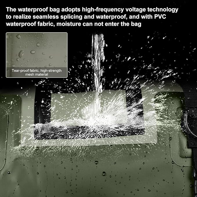 - 【100% Waterproof & Durable】:Waterproof Duffel Bag is made of high grade tarpaulin which is 100% waterproof, also the most durable material,Can be used for a lifetime! rolling up design with high frequency welded seams makes the waterproof performance more reliable,ensure all your gear stays completely dry! This waterproof dry bag won’t rip, tear, or puncture easily, so it's tough enough to take on whatever path you pick.