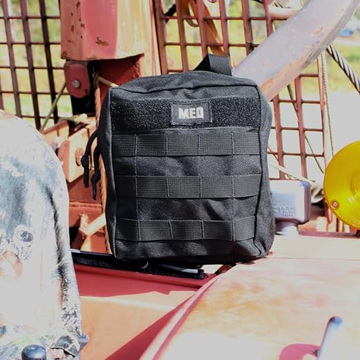 - MOLLE First Aid Pouch: This MOLLE-compatible first aid pouch can be easily attached to a headrest for quick access; The hard side of the hook-and-loop system allows it to securely attach to carpeted surfaces in your vehicle's trunk or floorboard