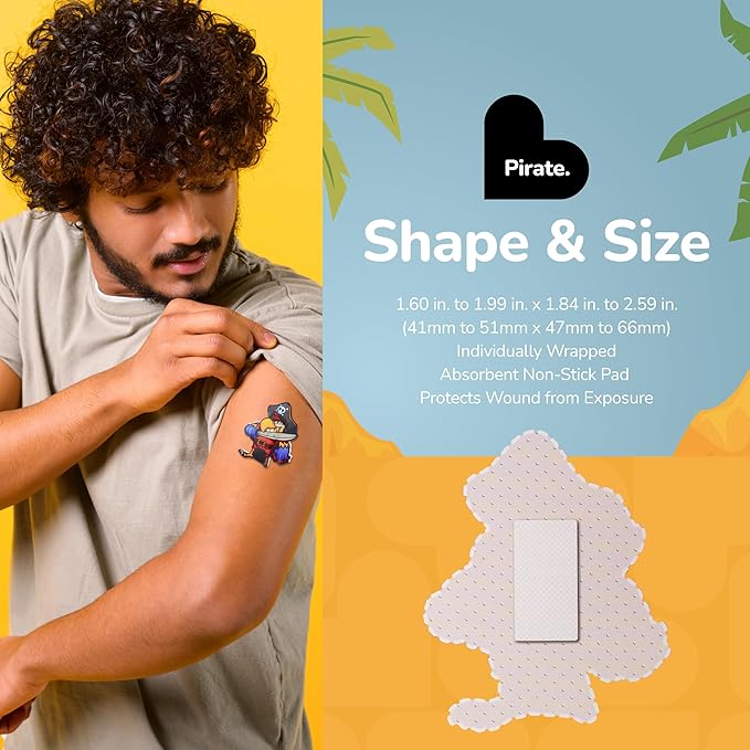 - EASY TO CARRY AND USE: These cute and colorful Pirate children's bandages are easy to take with you for travel, and easy to store in a home first aid kit; these healing bandages are perfect for school, summer camp, camping trips, weekend getaways and more