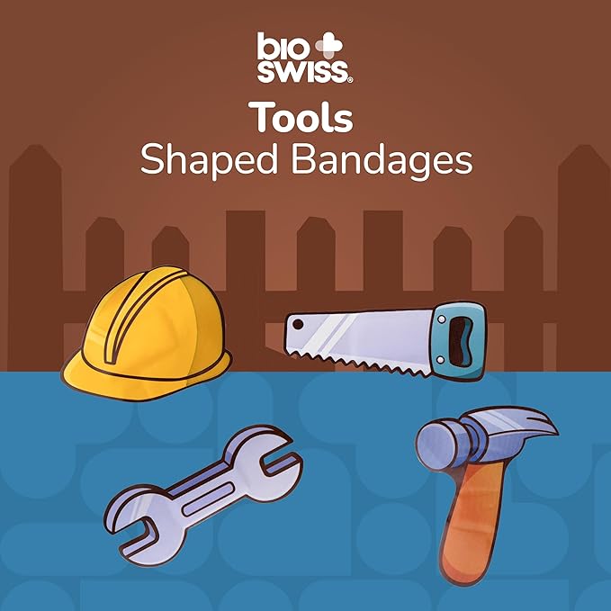 BioSwiss Bandages, Tools Shaped Self Adhesive Bandage, Latex Free Sterile Wound Care, Fun First Aid Kit Supplies for Kids and Adults, 50 Count