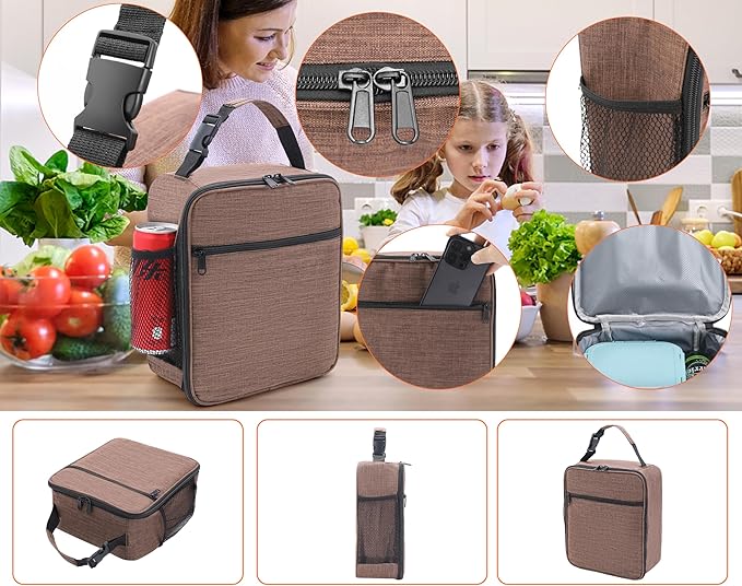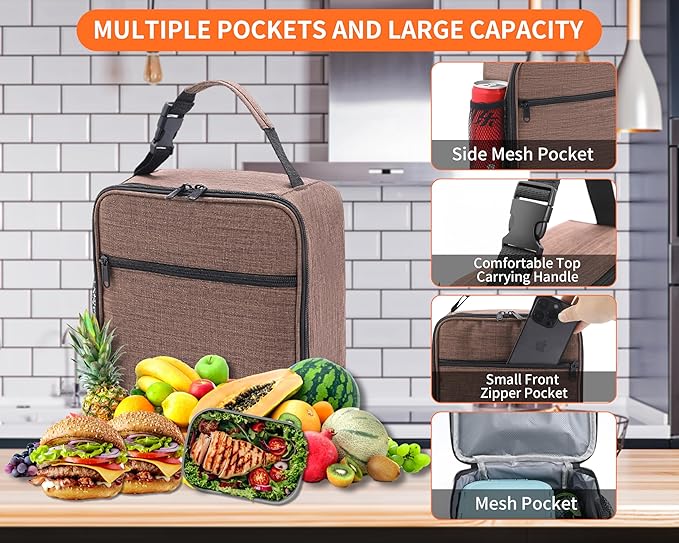 Lunch Box for Men - Reusable Lunch Bag Men Adult Women- Insulated Small LunchBox (Light Brown)