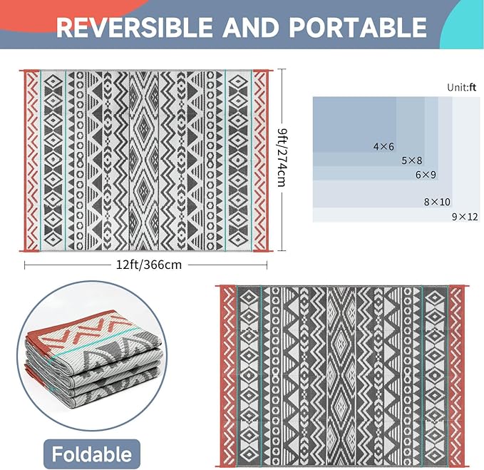 Outdoor Rugs Patio Camping Waterproof - 9x12 Plastic Straw Patio Rug Portable for Campers, Outside RVs Mat, Outdoor Area Carpet for Patios Clearance, Backyard Porch, Balcony, Picnic