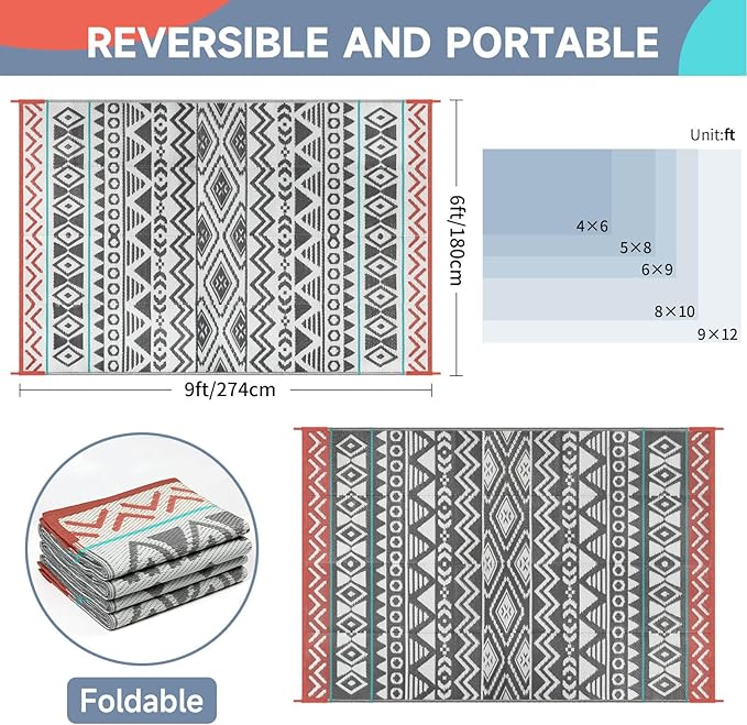 Outdoor Rugs Patio Camping Waterproof - 6x9 Plastic Straw Patio Rug Portable for Campers, Outside RVs Mat, Outdoor Area Carpet for Patios Clearance, Backyard Porch, Balcony, Picnic