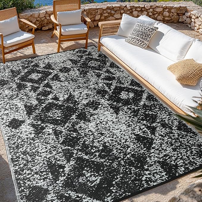 - VERSATILE USE FOR ALL OCCASIONS: Whether you're relaxing on the patio, hosting a picnic, or setting up your RV for a weekend getaway, this outdoor rug is designed to elevate every occasion. It's ideal for both indoor and outdoor settings, bringing a sense of balance and tranquility to any space. The outdoor carpet for patio is very suitable for decks, balconies, beaches, and more