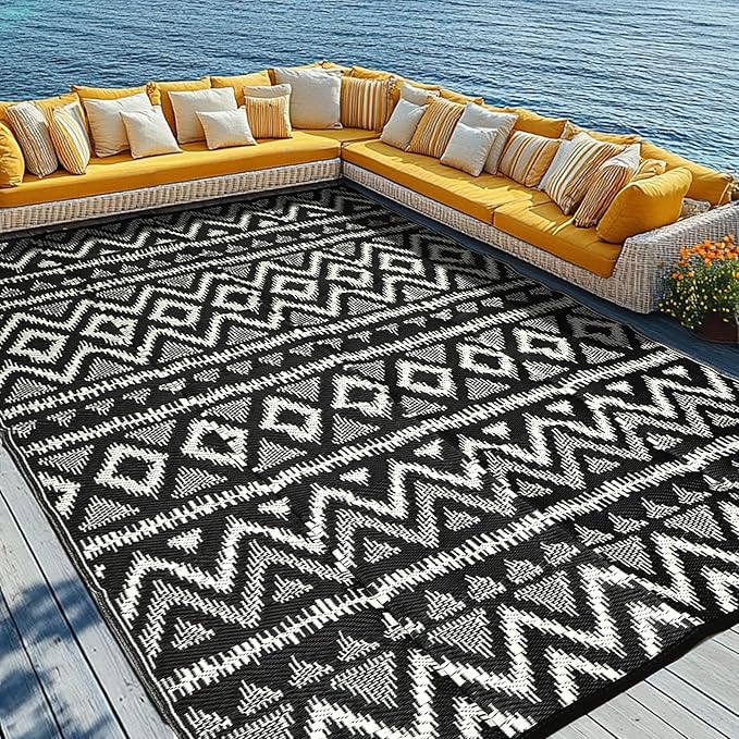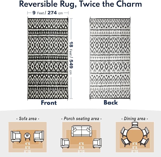 - VERSATILE USE FOR ALL OCCASIONS: Whether you're relaxing on the patio, hosting a picnic, or setting up your RV for a weekend getaway, this outdoor rug is designed to elevate every occasion. It's ideal for both indoor and outdoor settings, bringing a sense of balance and tranquility to any space. The outdoor carpet for patio is very suitable for decks, balconies, beaches, and more