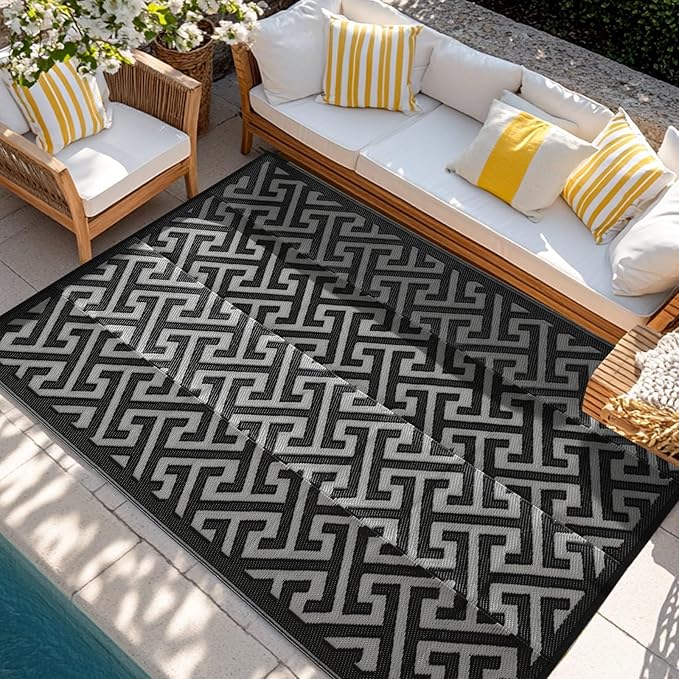 - REVERSIBLE MODERN DESIGN: Our outdoor rug features a reversible design with double-sided patterns, seamlessly blending style and comfort. Available in a variety of beautiful colors and patterns, this outdoor plastic straw rug invites you to create a harmonious outdoor space that reflects your personal taste. The soft texture offers a luxurious walking experience, combining aesthetic appeal with inviting comfort in every step