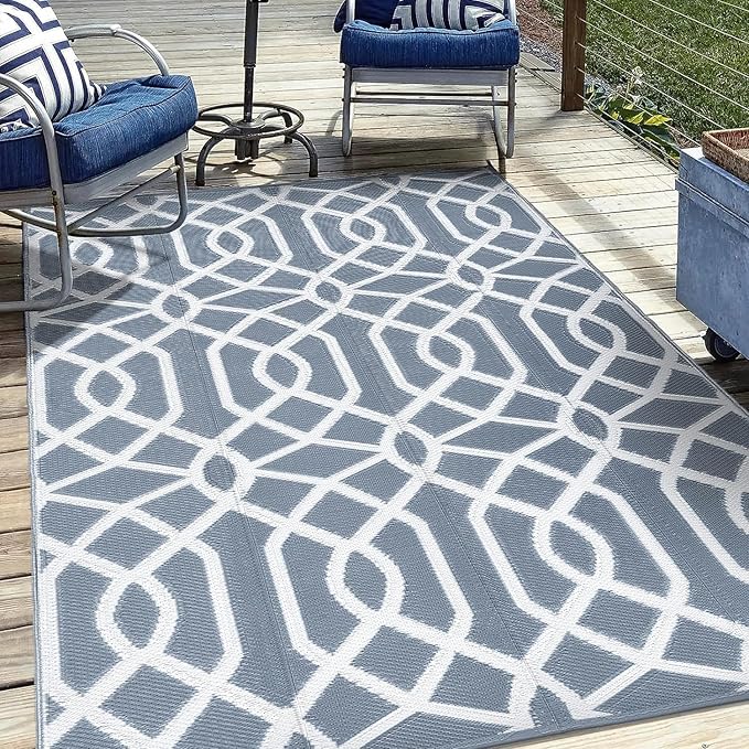 - CLASSIC DESIGN: The modern style pattern on our outdoor plastic straw rug is classic. It's easy to use on patio, balcony, deck, beach and garden.The outdoor patio rugs also work as area rugs, camping accessories, entryway rugs and camper accessories.