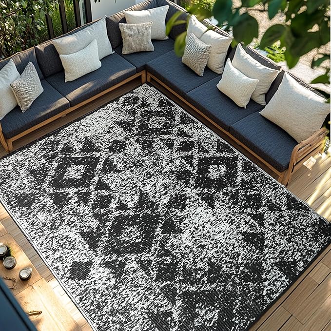 - VERSATILE USE FOR ALL OCCASIONS: Whether you're relaxing on the patio, hosting a picnic, or setting up your RV for a weekend getaway, this outdoor rug is designed to elevate every occasion. It's ideal for both indoor and outdoor settings, bringing a sense of balance and tranquility to any space. The outdoor carpet for patio is very suitable for decks, balconies, beaches, and more
