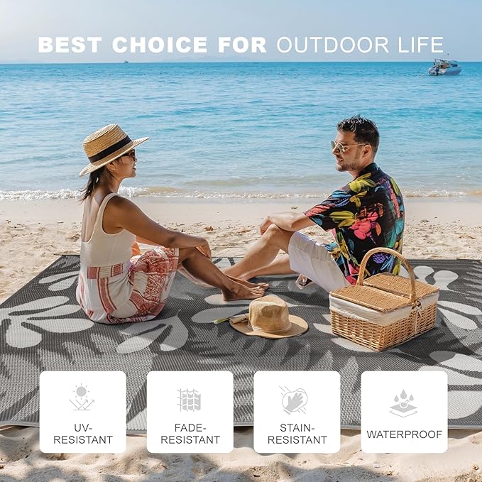 - EASY TO CLEAN & PORTABLE: Due to the woven design of the mat, it allows for it to be easily cleaned by wiping with a wet cloth or rinsing with water. This outdoor mat is also portable and can easily be packed up and brought with you on all your adventures, camping, barbecue picnic, beach trips or a RV travel.
