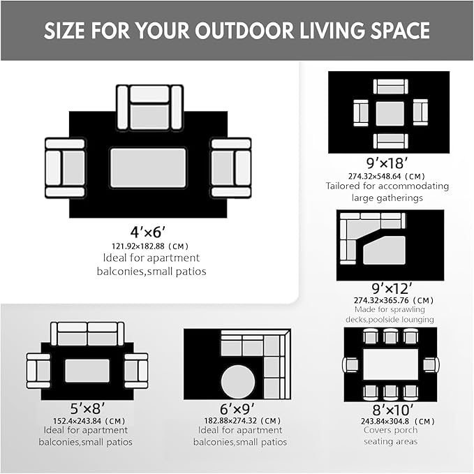 - IDEAL PREMIUM MATERIAL: WIKIWIKI indoor outdoor carpet is made of 400g/㎡ thick polypropylene, using a double weave process allows for the mat to be thick and durable. The mat is 9X12 feet and is waterproof, fade resistant, and ideal for the outdoors.